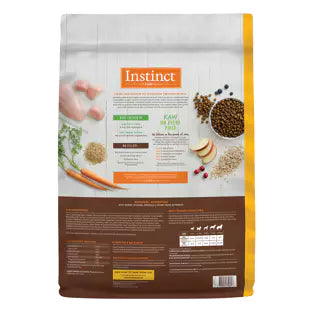 Natural nutrition begins here. Instinct Be Natural Real Chicken & Brown Rice Recipe starts with cage-free chicken and never contains filler, corn, wheat, soy or by-product meals or artificial preservatives and colors. Guided by our belief in the power of raw, each piece is tumbled with crushed freeze-dried raw chicken - raising the bar in nutrition and taste. Features - Cage-free chicken is our first ingredient, making real animal proteins are our #1 and #2 ingredients followed by hearty whole grains - No fillers - made without corn, wheat, soy, chicken or poultry by-product meal, brewer's rice, artificial colors or preservatives - Raw on every piece - our kibble is tumbled with freeze-dried raw for nutrition and taste - We believe in the power of raw because raw is real meat, natural, protein packed, minimally processed and made from whole-food ingredients