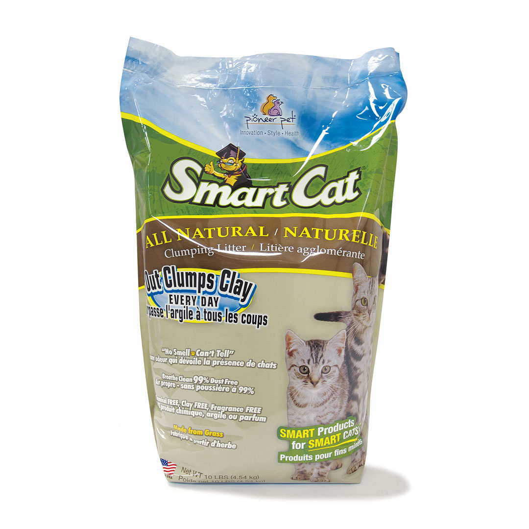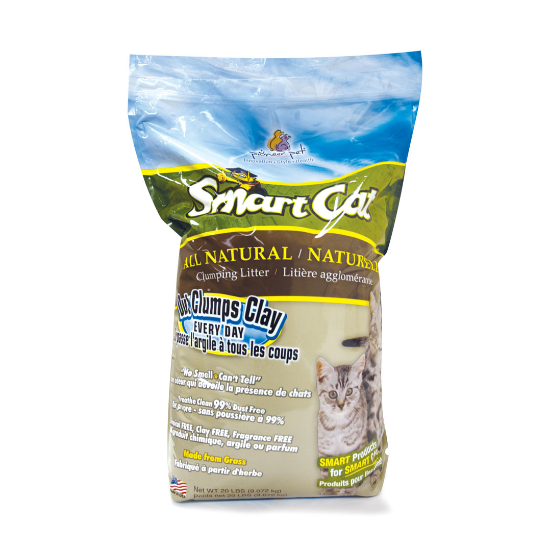 SmartCat All Natural Cat Litter is not only all natural but designed to make everything easier! Easier to carry, easier to scoop and easier to clean. On top of that we are made from 100% USA farmed grass, with no added fragrances. Our product will biodegrade after disposal as a renewable resource. We are very soft on paws and can be used for younger cats.